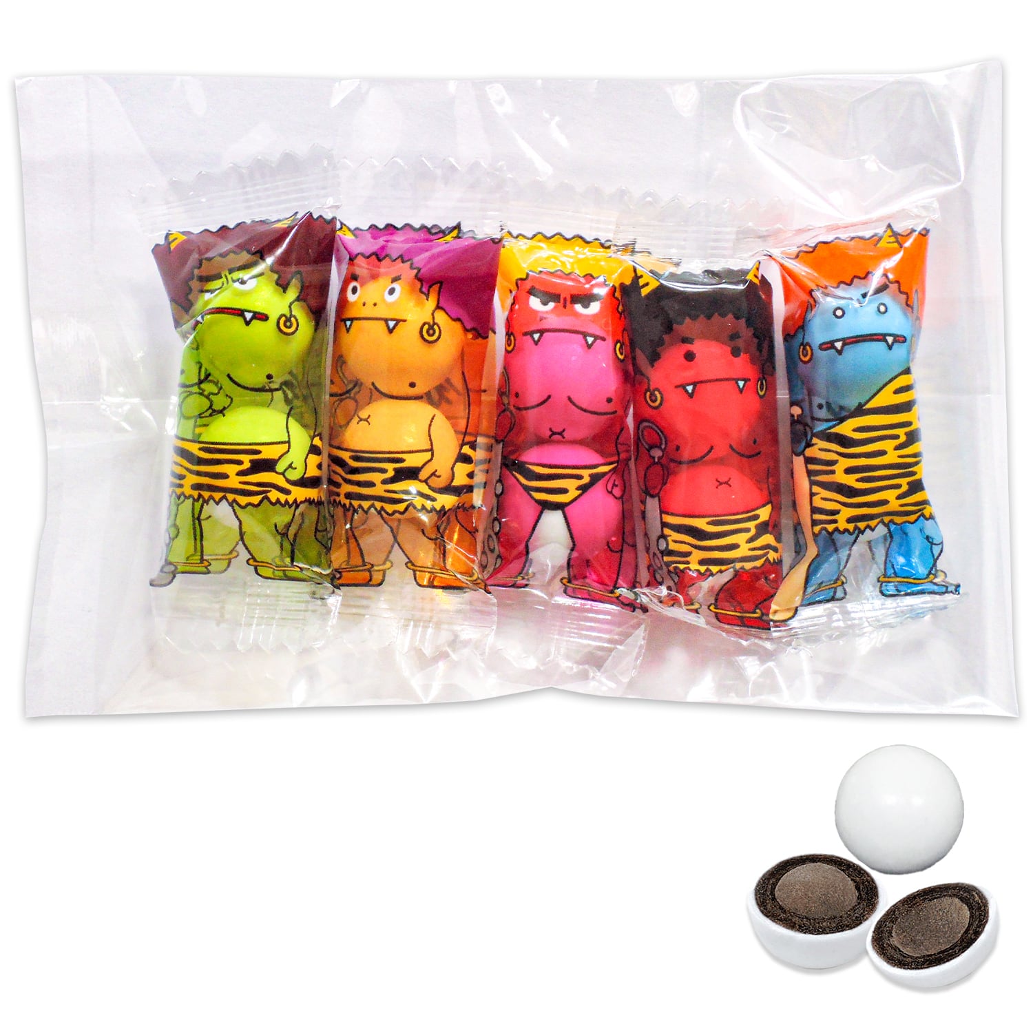 鬼の柄が袋に印刷されたチョコレートボールを、