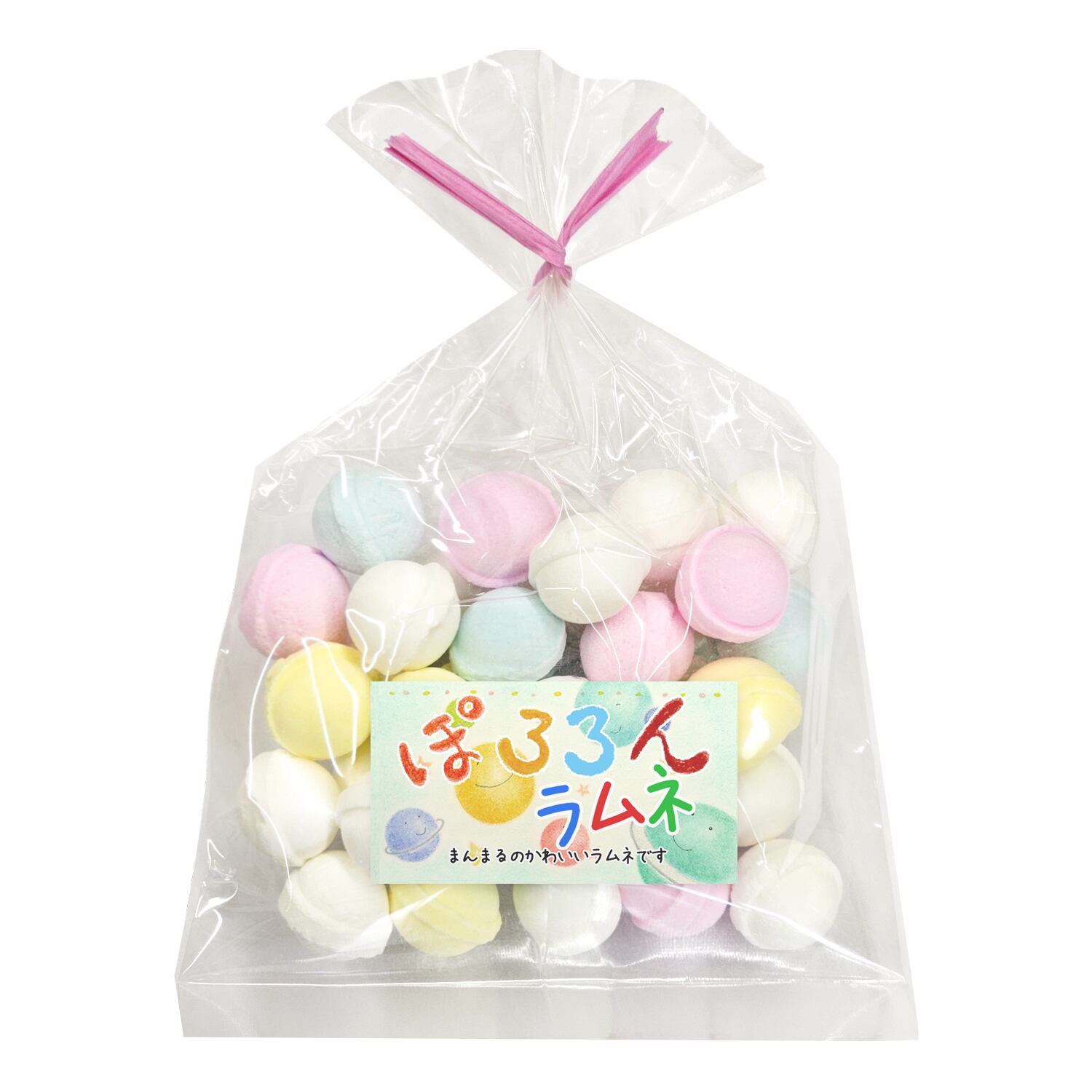 玉ラムネ、ボールラムネ、鈴ラムネなどの名前で呼ばれることもある、一般的なラムネ菓子です。