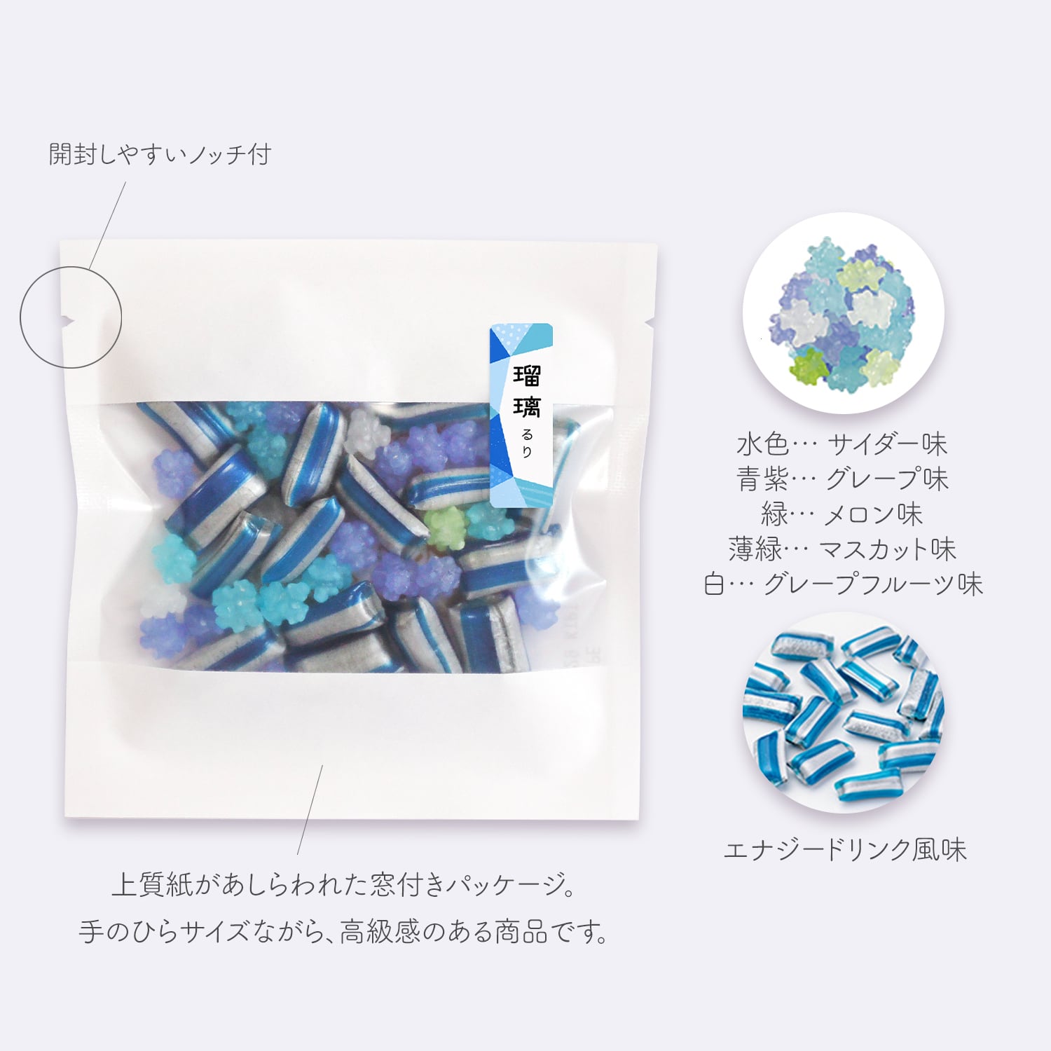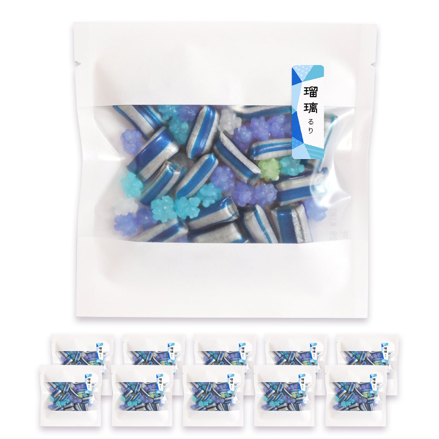 富久屋 瑠璃(るり) 1袋 金平糖と京飴の詰め合わせ (サイダー メロン グレープ グレープフルーツ エナジードリンク味) 食べやすいサイズ 京菓子 京都土産にも ギフトメッセージ対応 (10個セット)