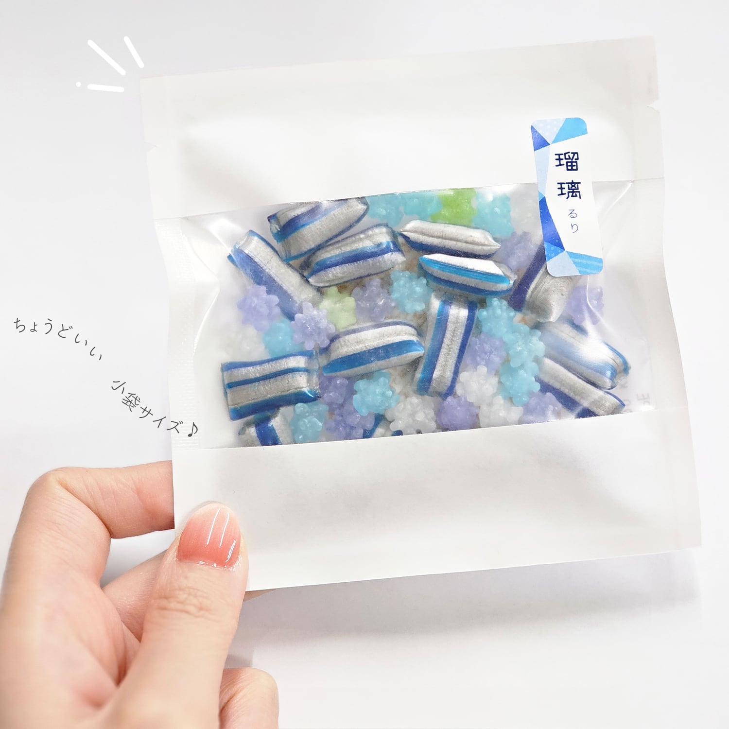 ・京飴は「てまり玉」のような見た目がかわいい、ブルーベリーヨーグルト味の京飴です。