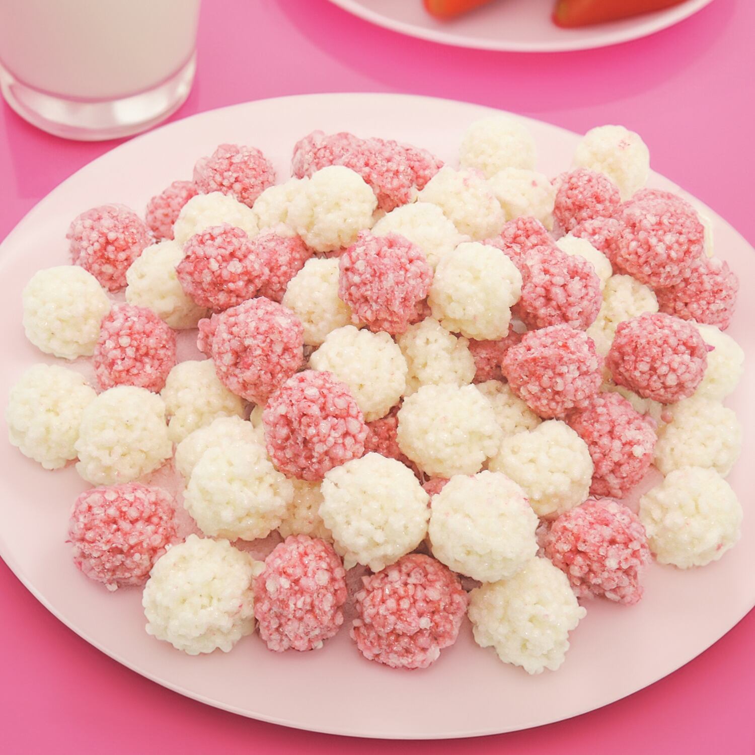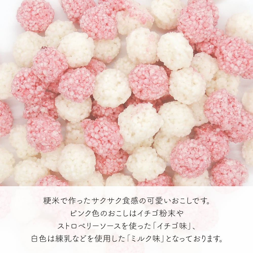・業務用 1kg入り! 粳米 で作った サクサク 食感 の いちご&みるく味 の 可愛いくて食べやすい まんまる おこし!