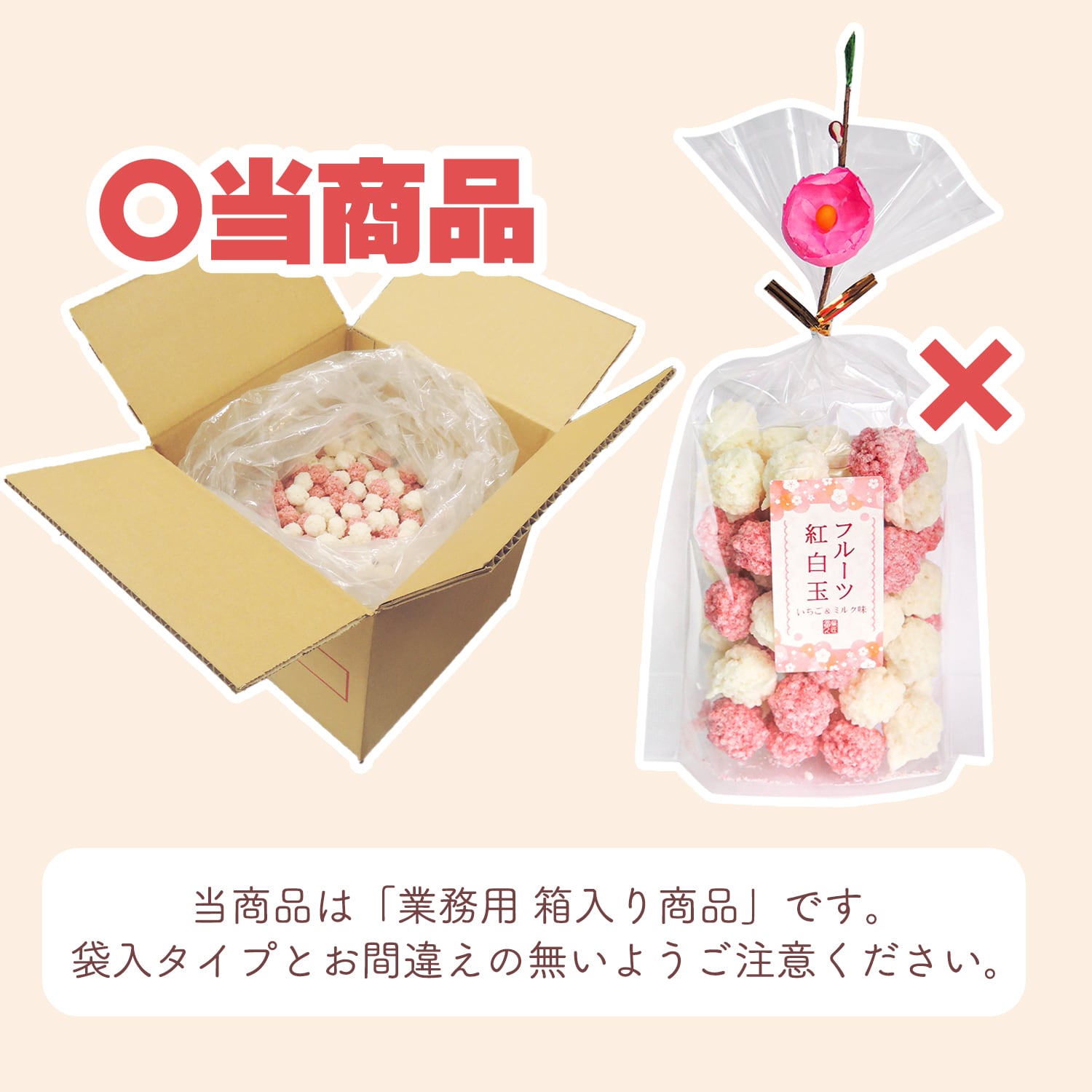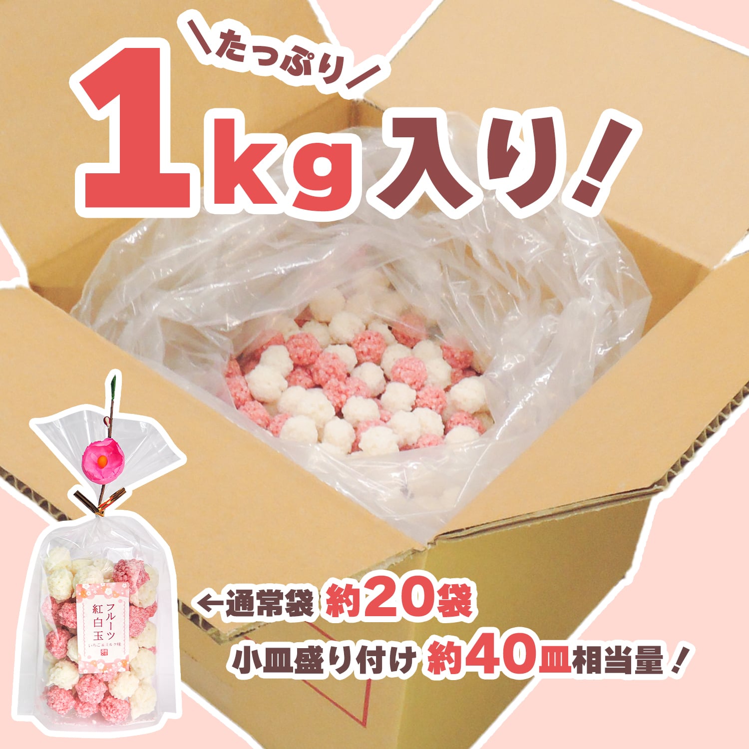 業務用「いちご&ミルク味のまん丸おこし」1kg