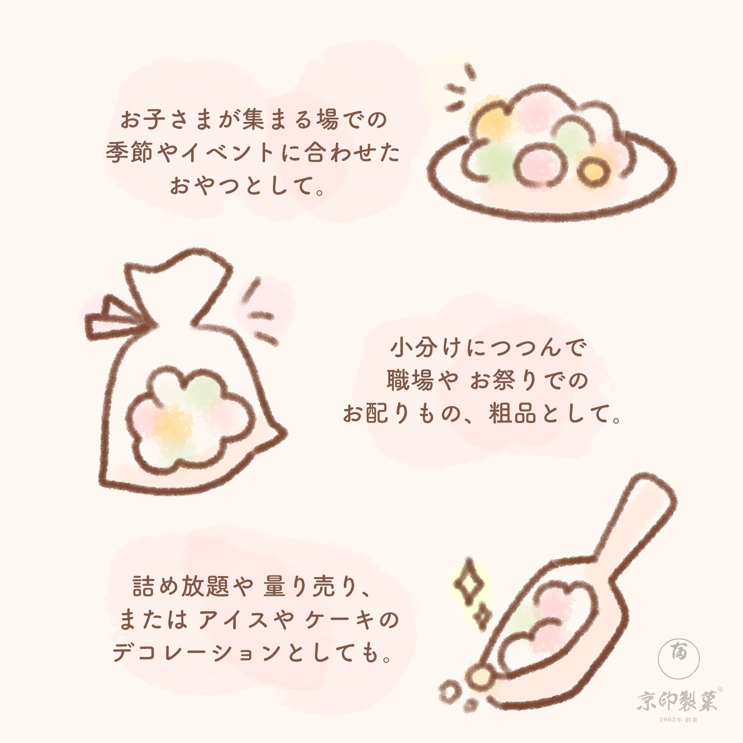 ・桃の節句・ひな祭り にもぴったり!優しい甘さのため、老人ホーム様や学童様でもご利用いただいております。イベントのお菓子にも最適です!