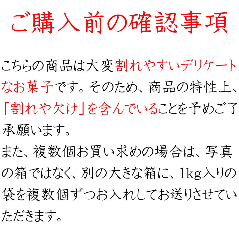 ※こちらの商品を複数個お求め頂いた場合は、写真の箱ではなく、別の大きな箱に、1kg入りの袋を複数個ずつお入れしてお送りさせていただく場合がございますのであらかじめご了承願います。