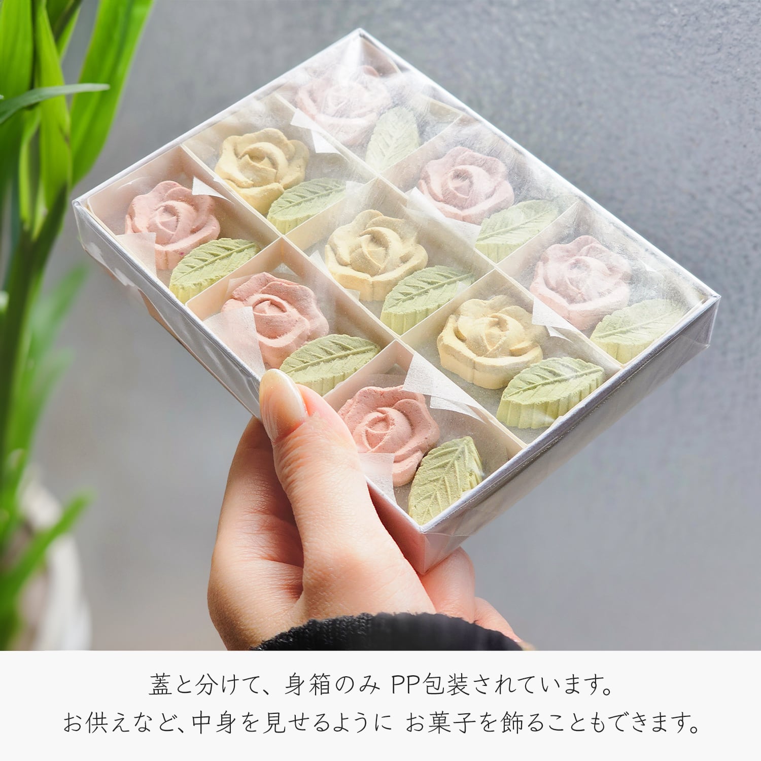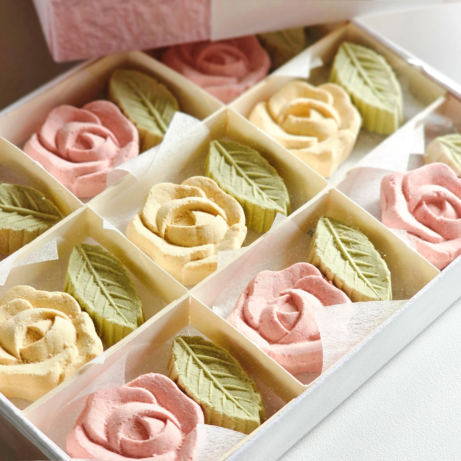 薔薇9個+葉9個の計18個入 箱サイズ約14×10×2cm