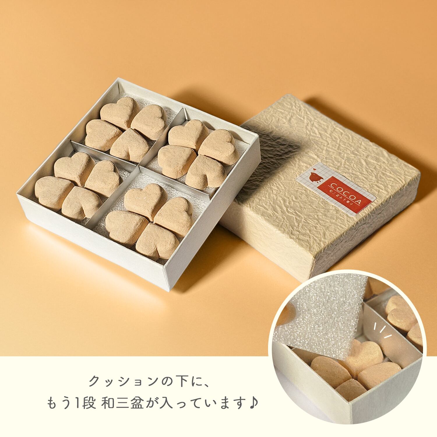 ハートの かわいらしい見た目と、日本の伝統的な和三盆糖お干菓子の組み合わせは、